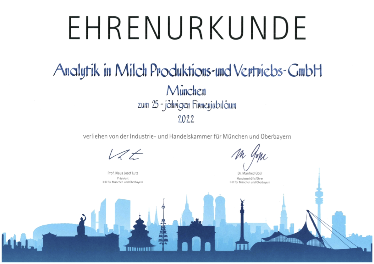 Die AiM GmbH ist ein modernes, kundenorientiertes Unternehmen, das die individuellen Anforderungen der Branche erfüllt und umgehend die gestellten Herausforderungen annimmt. Durch die Gesellschafter der AiM GmbH ist eine enge Anbindung an die süddeutsche Milchwirtschaft gewährleistet. Unser Kundenstamm setzt sich aus nationalen und internationalen Kunden zusammen und umfasst Kontrolllabore, Molkereien und Landwirte. Kompetenz im Bereich Referenzmaterial und Eignungsprüfungen sowie maßgeschneiderte interne Schulungen zum Thema Hemmstoffanalytik oder die Möglichkeit der Teilnahme an Praxisseminaren runden unser Angebot ab.